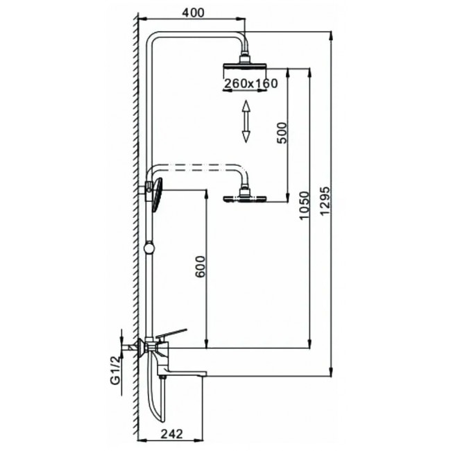 | Размер верхнего душа, мм | 260 х 160 |