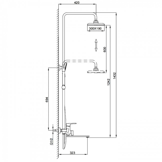 | Размер верхнего душа, мм | 300 х 190 |