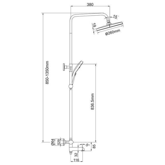 | Комплектация | Смеситель; Душевая стойка; Верхний душ; Душевая лейка; Душевой шланг; Держатель для душевой лейки; Н |