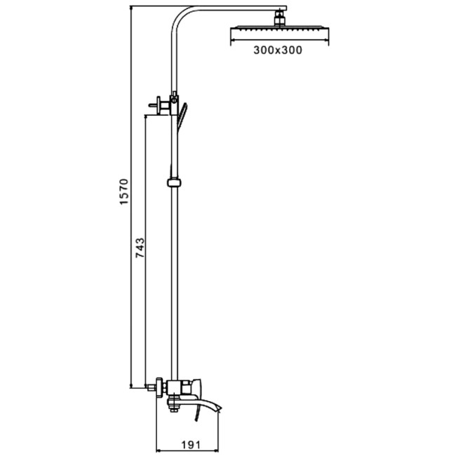 | Размер верхнего душа, мм | 300 х 300 |
