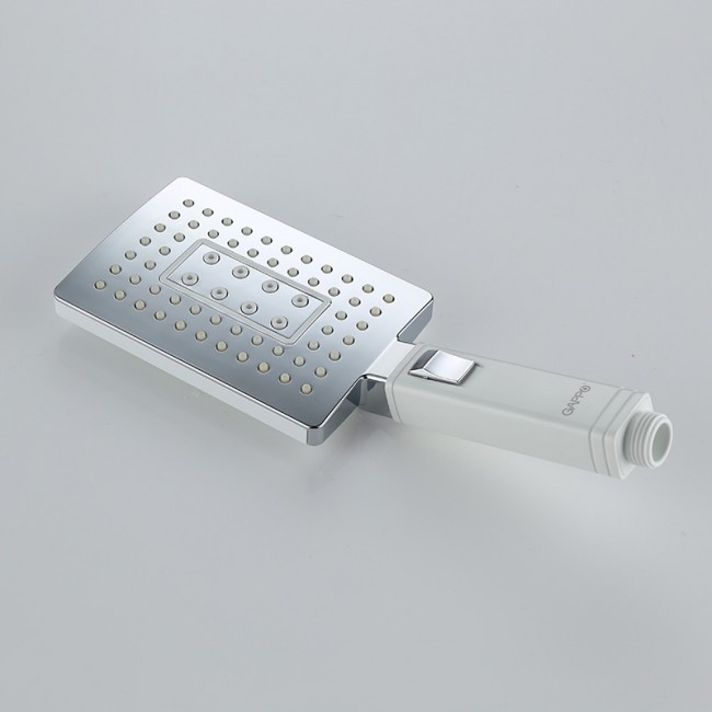 Современная душевая система G2407-8 GAPPO выполнена из латуни в цвете белый с хромом, имеет глянцевую поверхность, высота 1570 мм. Комплектуется тропическим душем 200х300 мм. Испанский картридж Ф35 мм. Душевая лейка двух режимная с выдвижным держателем. Переключение с излива на тропический душ и душевую лейку производится поворотом излива, а для переключения с душа на тропический душ (при повернутом изливе) производится поворотным переключателем. В комплекте душевой шланг. Идеально подходит для установки в душевых углах и кабинах, а так же в ваннах.