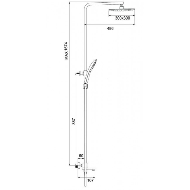| Размер верхнего душа, мм | 300 х 300 |