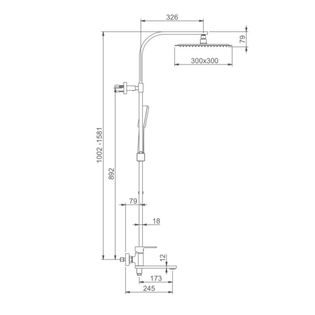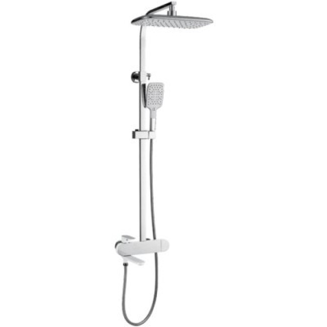 С тропическим душем, с ручным душем, с регулировкой по высоте, с шлангом для душа, с кронштейном, верхний душ, душевая стойка, смеситель, девиатор, излив для ванны