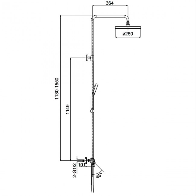 | Размер верхнего душа, мм | 260 |