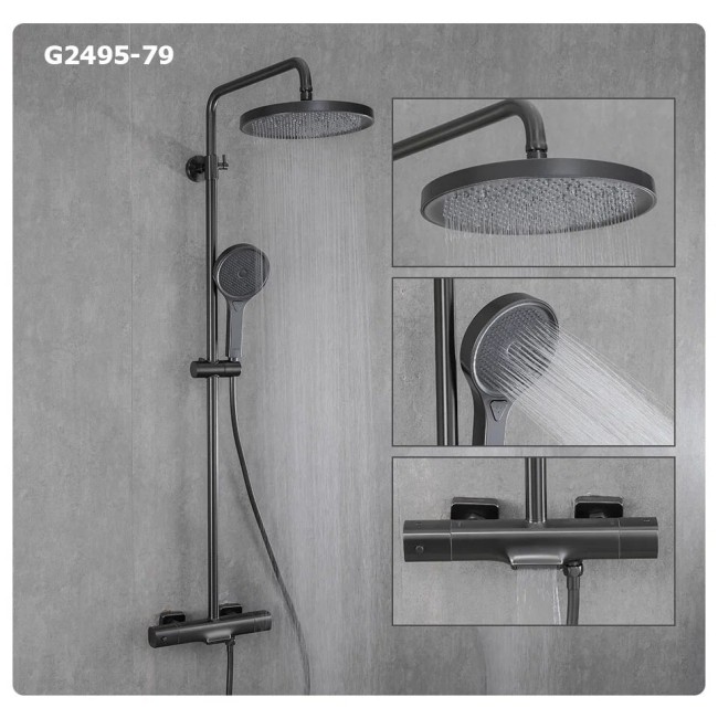 Душевая система G2495-79 латунь/оружейная сталь, с термостатом Gappo