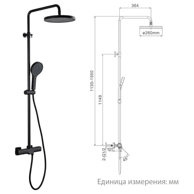 | Размер верхнего душа, мм | 260 х 260 |
