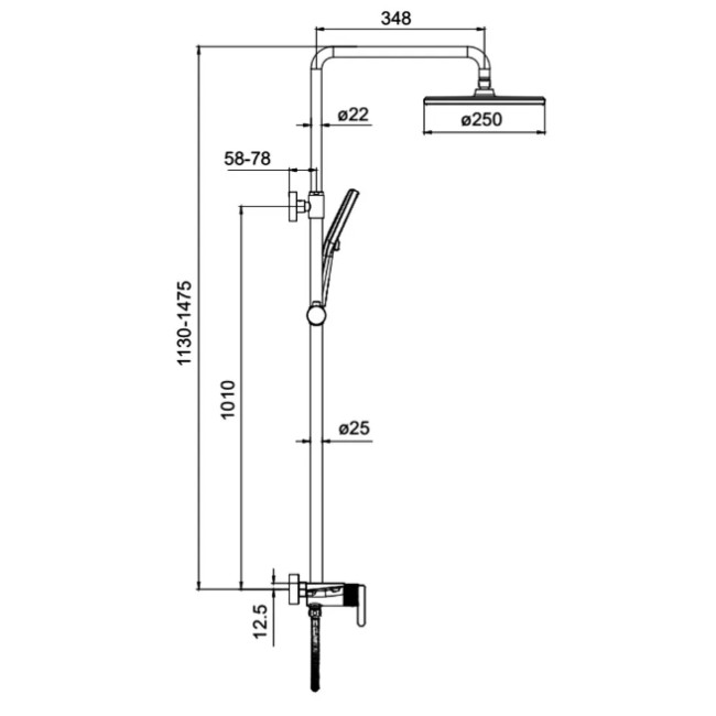 | Вылет верхнего душа, мм | 348 |