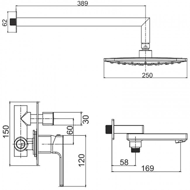 | Комплектация | Смеситель; Верхний душ; Держатель для душевой лейки; Душевая лейка; Душевой шланг; Кронштейн; Наружн |