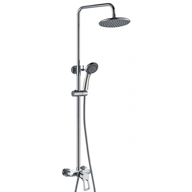 Количество в коробке: 1шт. Душевая колонна — это смеситель, устанавливаемая на стену, укомплектованный верхним тропическим душем и шлангом с душевой лейкой.Производитель использовал силумин для изготовления корпуса. Этот сплав устойчив к коррозии и механическим повреждениям, которые часто образовываются в виде протечек или микротрещен, спустя некоторое время эксплуатации. В состав душевой колонны включается верхний жёстко закреплённый душ обычно с душевой насадкой увеличенной площади, душ на гибком шланге, а также могут размещаться на вертикальной плоскости специальные форсунки. Переключение режимов формирования струй в них может осуществляться механически или при помощи электрически управляемых приводов. В системе может также использоваться термостат для регулировки температуры воды в струе.