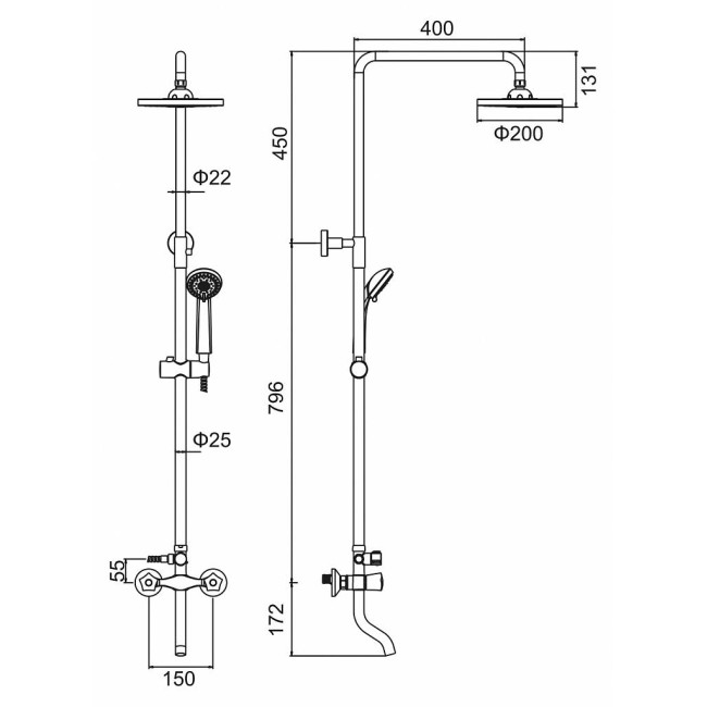 | Форма верхнего душа | Круглая |