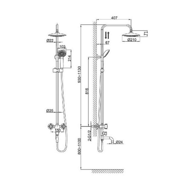 | Комплектация | Смеситель; Душевая штанга; Тропический душ; Душевая лейка и шланг; Держатель лейки; Настенные держат |