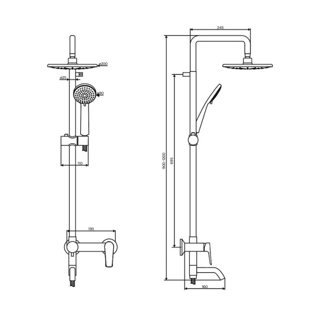 | Форма верхнего душа | Круглая |