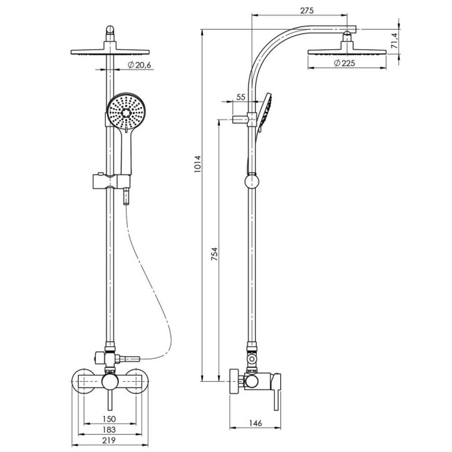 | Форма верхнего душа | Круглая |