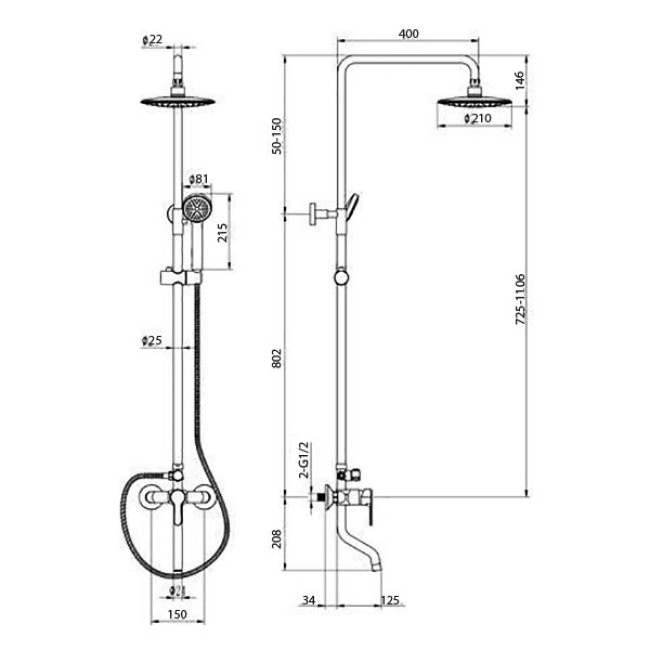 | Комплектация | Смеситель; Душевая штанга; Тропический душ; Душевая лейка и шланг; Держатель лейки; Настенные держат |