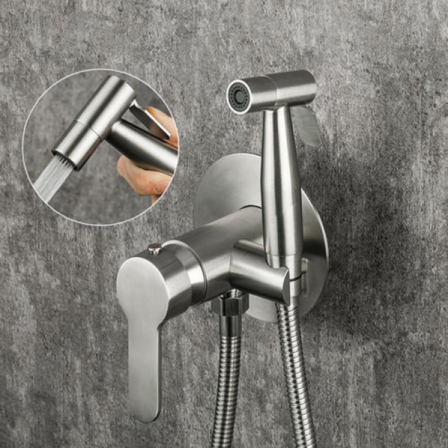 Предлагаем встраиваемый гигиенический душ для биде GAPPO G7299-30 в цвете сатин. Смеситель изготовлен для монтажа в стену. Удобство модели заключается в том, что все подводные коммуникации скрыты за стеной, а то, что осталось "на виду" - это главные элементы, которые внешне привлекательны. В комплект кроме смесителя с декоративной крышкой входят гигиеническая лейка с держателем и шлангом.
