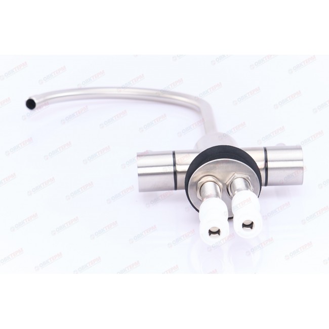 Кран для чистой воды Аквабрайт АБФ-КР-2 с 2-я керамическими кран-буксами, с двумя вентилями. Предназначен для подключения к системам обратного осмоса с картриджем минерализации. Кран устанавливается в кухонную мойку или столешницу рядом с мойкой.