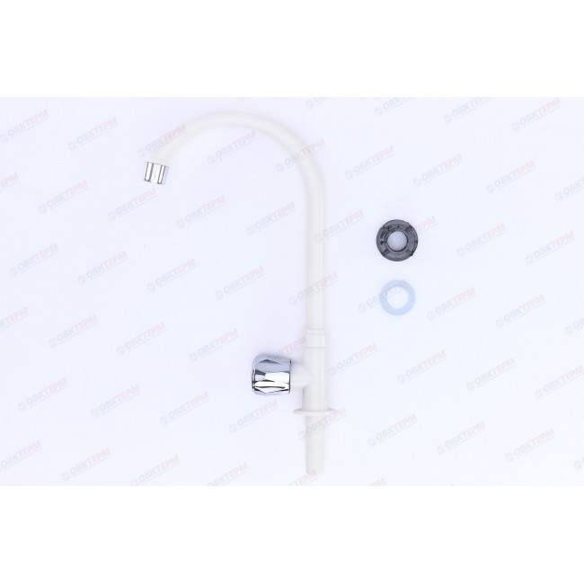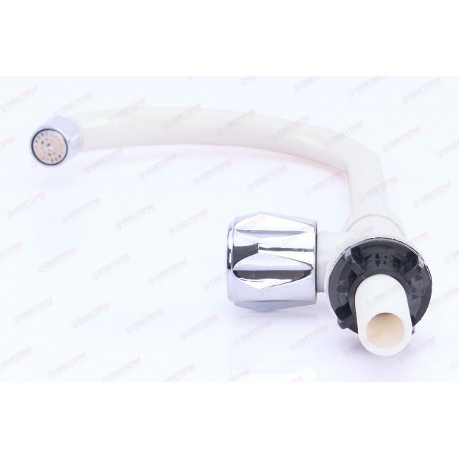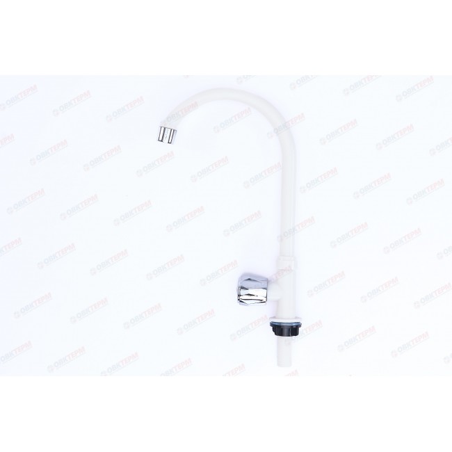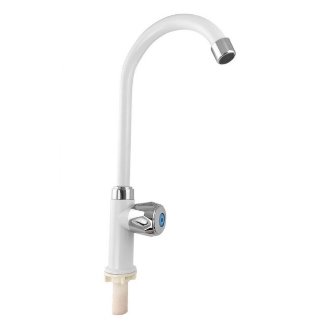Кран на одну воду, из высокопрочного пластика АБС - БЕЛЫЙ с аэратором для экономии воды . Крепление резьба - гайка. Кранбукса м/к , ручка - барашка