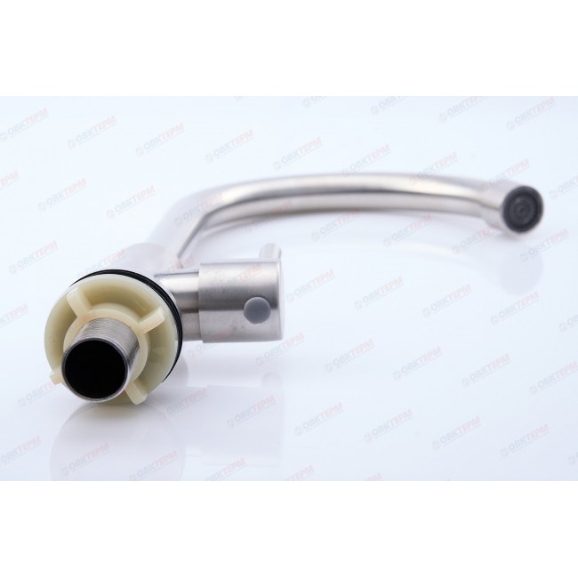 В качестве управляющего элемента, в данной модели используется поворотный вентиль. Прибор крепится на раковину и фиксируется с помощью крепежа "гайка". Подача воды в смеситель осуществляется с помощью подводки.