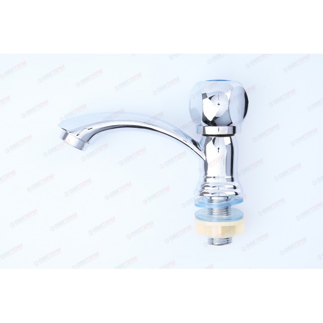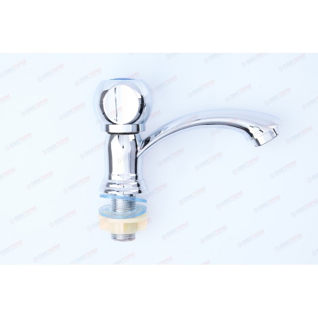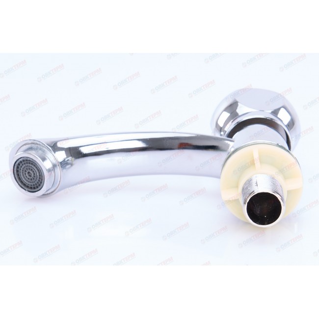 В качестве управляющего элемента, в данной модели используется поворотный вентиль. Прибор крепится на раковину и фиксируется с помощью крепежа "гайка". Подача воды в смеситель осуществляется с помощью подводки.