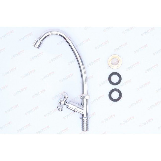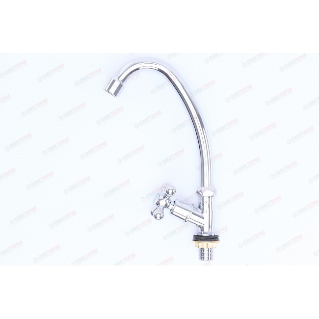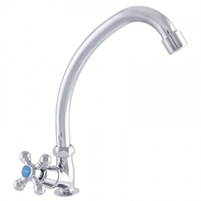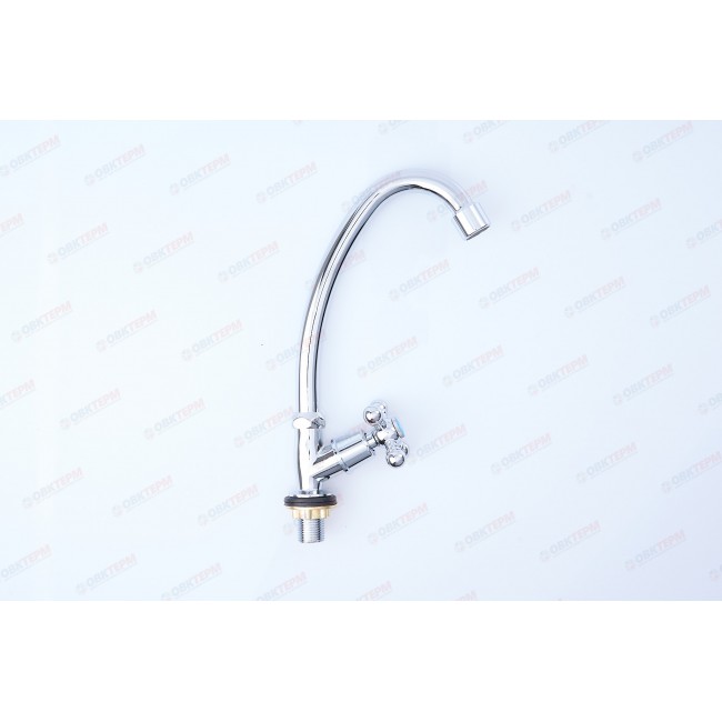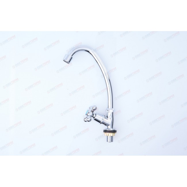 Количество в коробке: 30шт. смеситель для умывальника, приспособленный для приема и подачи только холодной воды. В его изготовлении задействовался пластик первого сорта. Внешне изделие напоминает металлический смеситель, такого эффекта помогает достичь хромовое покрытие. Гусак у изделия простой и одновременно практичный. За счет его приподнятого строения с загибом под смесителем образуется пространство для свободных действий. Воду открывать можно посредством объемной ручки. Она вытянутой формы, с выемками для пальцев и с синей отметкой для обозначения температуры воды. Крепится всё изделие на ровную поверхность посредством гайки.