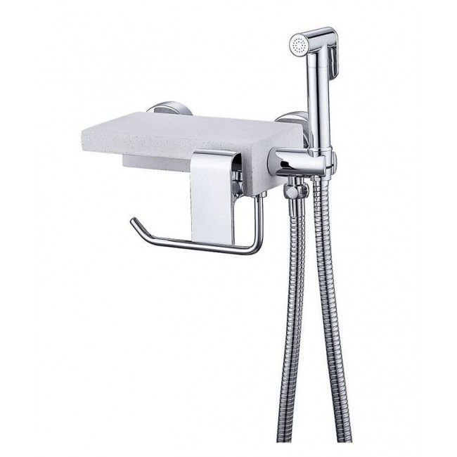 Смеситель д/биде KOER KB-25101-01 с гигиен. душем, бумагодержателем и камен.полочкой (Цвет хром)