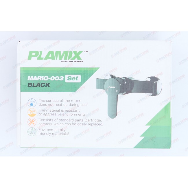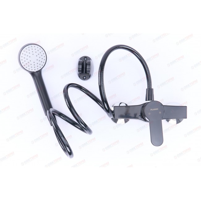 Смеситель д/душ.кабины, PLAMIX Mario-003 SET BLACK (со шлангом, лейкой и кронштейном) (30шт/ящ)