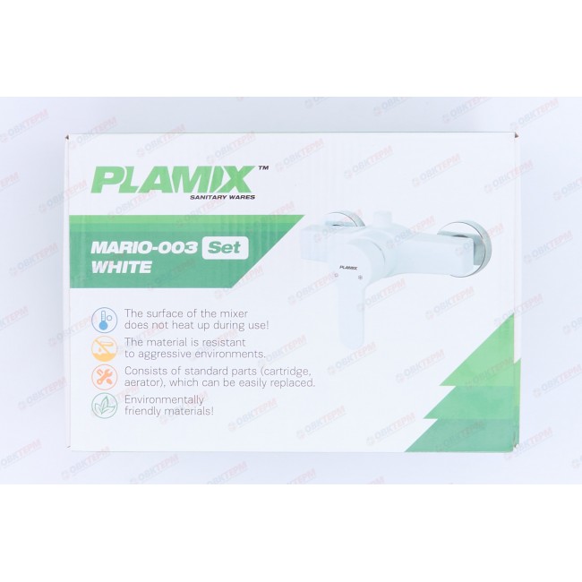 Смеситель д/душ.кабины, PLAMIX Mario-003 SET WHITE (со шлангом, лейкой и кронштейном) (30шт/ящ)