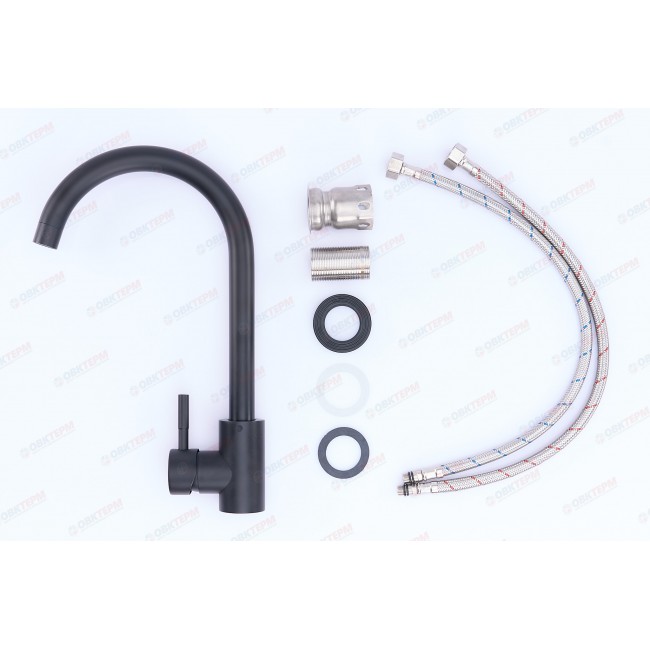 Количество в коробке: 10шт. Производитель использовал нержавеющую сталь для изготовления корпуса. Этот сплав устойчив к коррозии и механическим повреждениям, которые часто образовываются в виде протечек или микротрещен, спустя некоторое время эксплуатации. Картриджный смеситель для кухни с высоким поворотным носом, комплектуется гибкой подводкой, крепление гайка. Смеситель предназначен для встроенного монтажа на одно отверстие. Принцип смешивания воды — однорычажный.