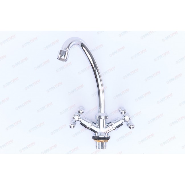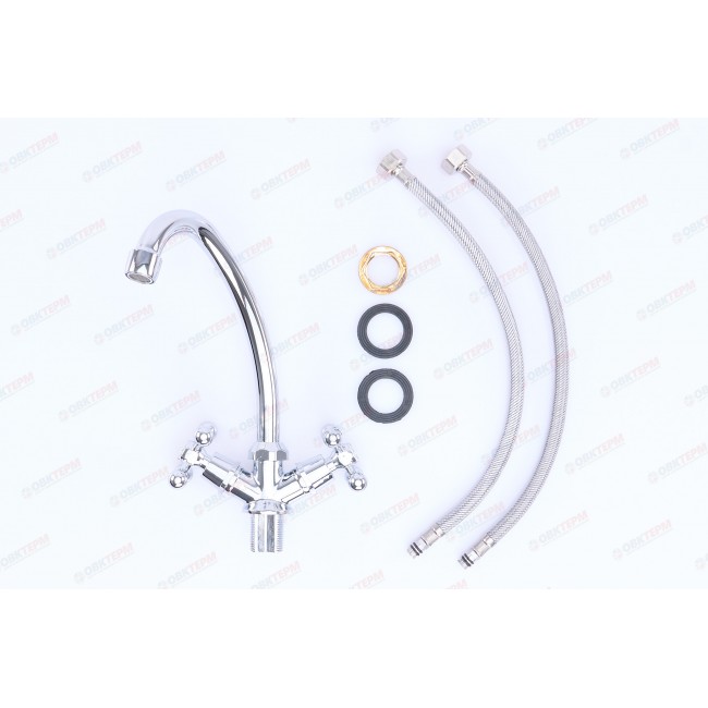 Количество в коробке: 20шт. Смеситель для кухни двухвентильный - сантехнический прибор, предназначенный для регулирования и смешивания горячей и холодной воды, что позволяет получить единый поток с максимально комфортной температурой. Данный смеситель предназначен для кухонной раковины и представляет собой корпус с изливом, имеющий управляющий элемент в виде двух вентилей, позволяющих отрегулировать поток как холодной, так и горячей воды. В комплекте идет: смеситель, крепление, гибкие подводки.