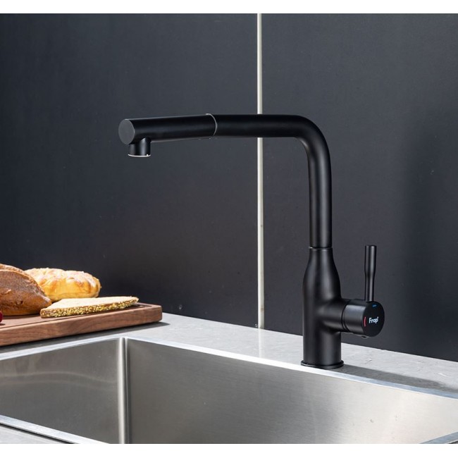 Смеситель д/кухни черный F6096-6 выдвижная лейка (Ø35, на гайке) FRAP