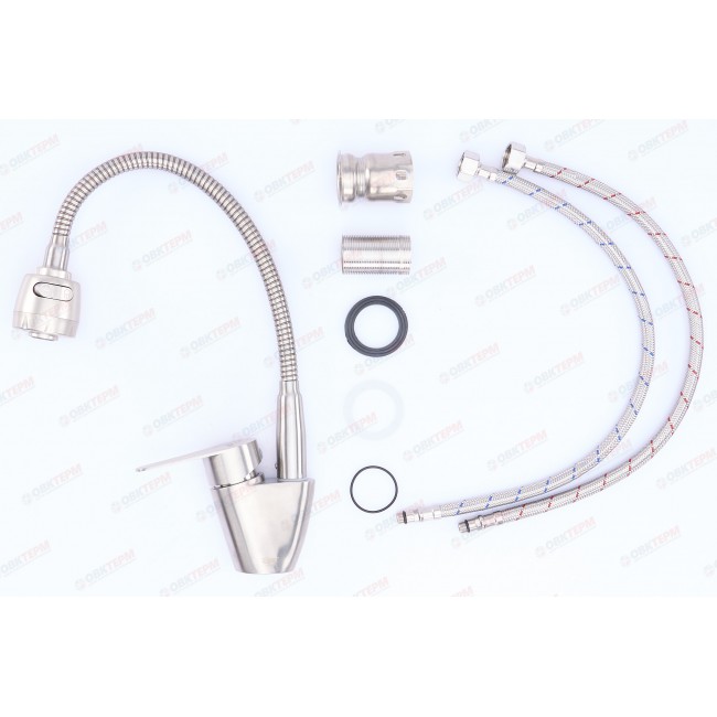 Количество в коробке: 10шт. Кухонный смеситель ZERIX HSB-011 с гибким изливом прекрасно подходит к гранитным мойкам, а так же к раковинам из стали. Имеет высокий излив с поворотом на 360 градусов, который позволяет набрать воду в самую высокую посуду. Корпус смесителя изготовлен из нержавеющей стали. Удобен в обращении, т.к. имеет всего одну ручку - регулятор для холодной и горячей воды. Имеет 35 диаметр для установки - это стандартизированный размер, подходящий под все мойки, любого производителя. Кран имеет аэратор, насыщающий струю воды кислородом и экономящий её.