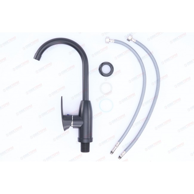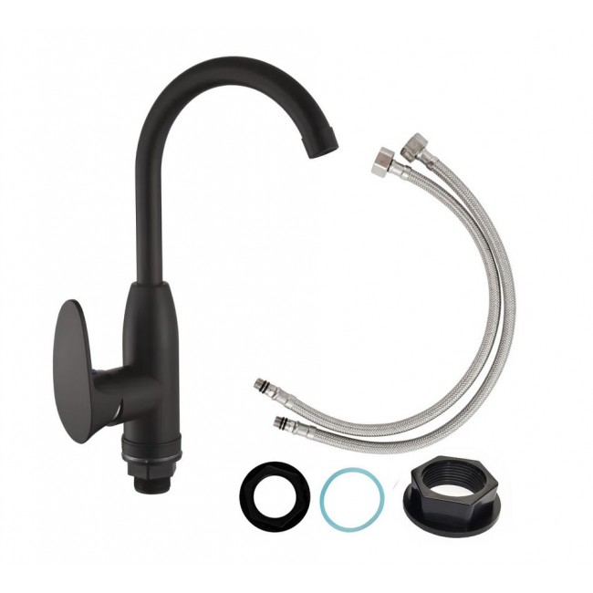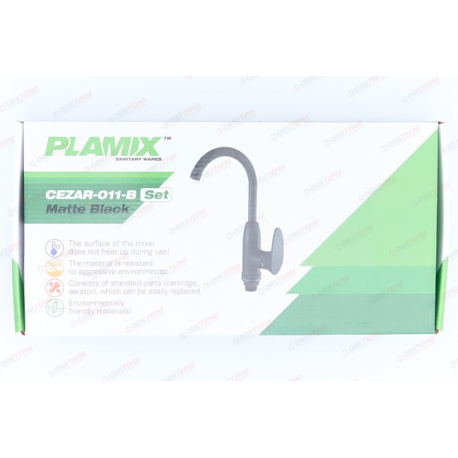 Смеситель д/кухни PLAMIX CEZAR-011-B SET Matte black, (гайка, Ø35)