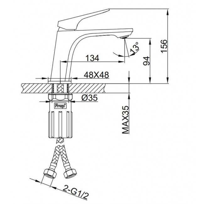 Смеситель д/раковины хром F1087 латунь (Ø35, на гайке) (10 шт) FRAР