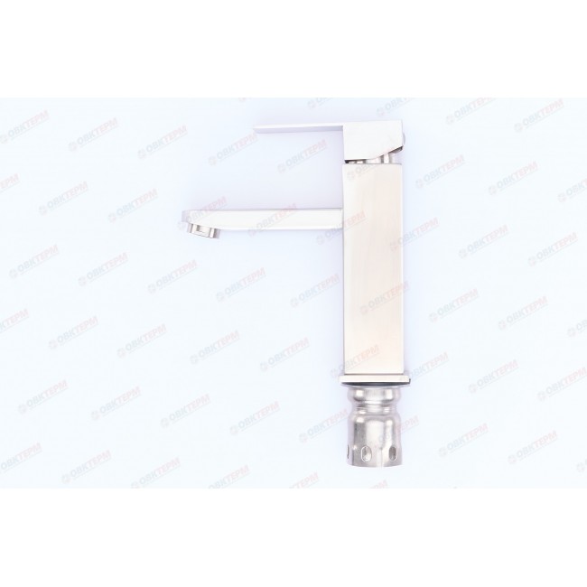 Смеситель из цельно литого корпуса, в современном и модном дизайне из пищевой нержавеющей стали не содержит свинец, со временем не поддается коррозии, имеет удобный в использовании не поворотный излив, картридж с керамическими пластинами и крепиться гайкой, что очень удобно и надежно.