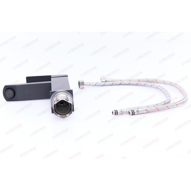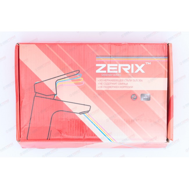 Смеситель д/умывальника нерж/сталь ZERIX KUB-001 BLACK (катридж 35мм, на ГАЙКЕ) 10 шт/ящ