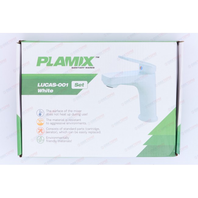 Смеситель д/умывальника PLAMIX LUCAS-001 SET WHITE (с подводкой) (30 шт/ящ)