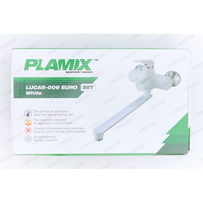 Смеситель д/ванны PLAMIX LUCAS-006 EURO SET WHITE (с шлангом, лейкой и кронштейном) (24 шт/ящ)