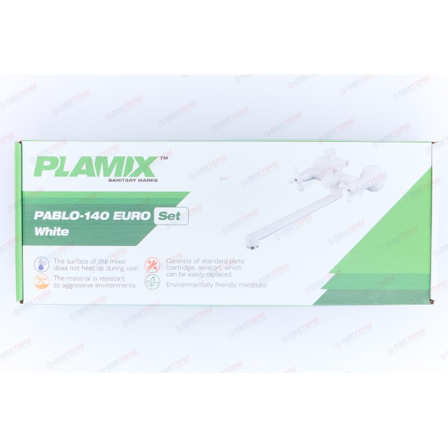 Смеситель д/ванны PLAMIX PABLO-140 EURO SET White (с шлангом и лейкой)