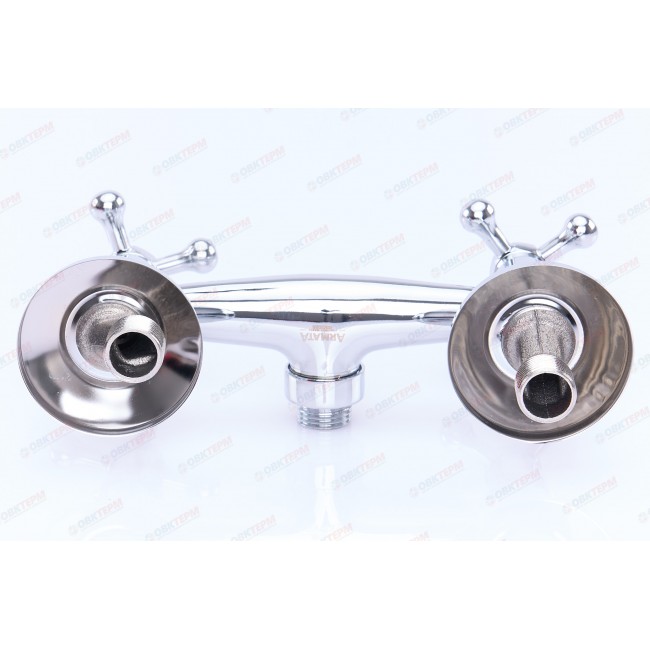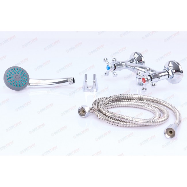 Количество в коробке: 12шт. Двухвентильный смеситель Armata предназначен для настенного крепления в душевой кабине. Прибор выполнен из латуни с покрытием цвета хром. Сочетание прочного металлического сплава с хромированием обеспечивает высокую стойкость буксового смесителя к ржавчине, окислению и воздействию жесткой воды. Запирание воды осуществляется керамическими буксами, для полного открытия-закрытия которых достаточно пол-оборота. Конструктивные особенности запорного клапана смесителя для ванной позволяют плавно настраивать температурный режим, вне зависимости от силы напора в каждом из кранов. В модели 003 отсутствует излив, но предусмотрен душевой комплект с длинным гибким шлангом. К буксовому смесителю прилагается 3-позиционная лейка и кронштейн для вертикального размещения ручного душа.