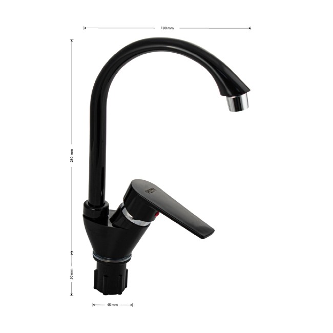 Смеситель для кухни, 566 боковой, шаровый из АБС пластика черный Brimix