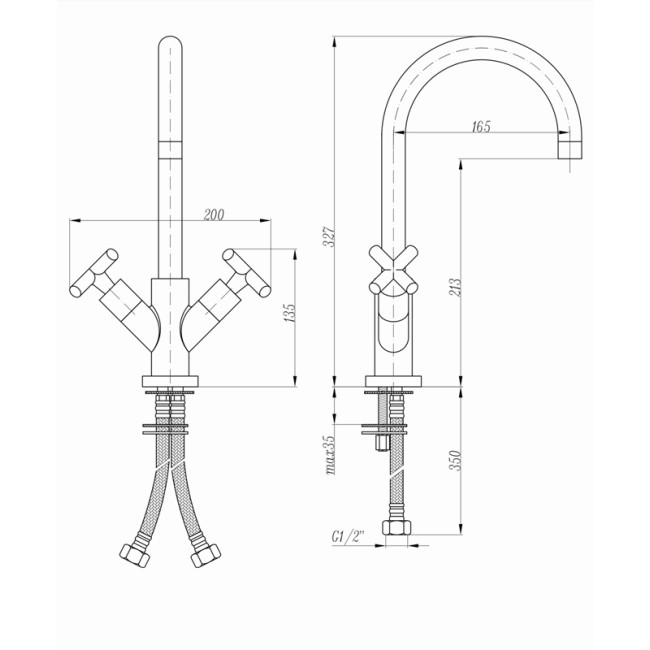 Смеситель для кухни Dve 011 из нержавеющей стали SUS304 Ø40 Mixxus