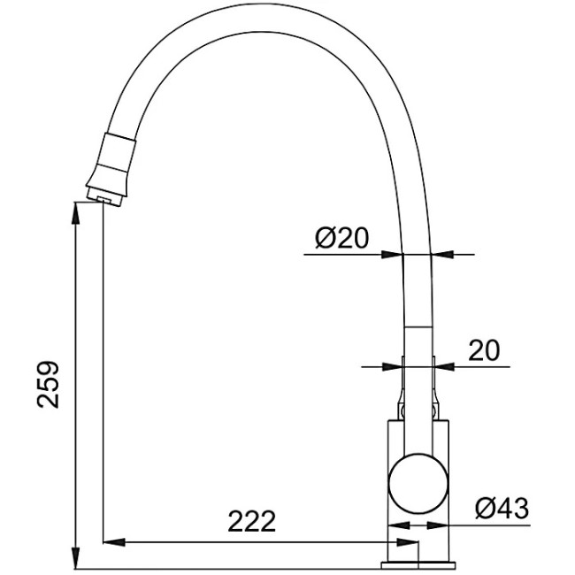 | Высота излива, мм | 259 |