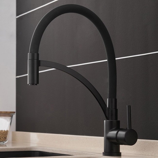 Смеситель для кухни F4552-6 с гибким изливом черный Frap