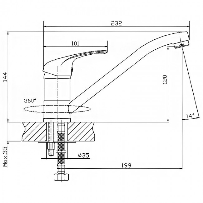 | Вращение излива | Поворотный |