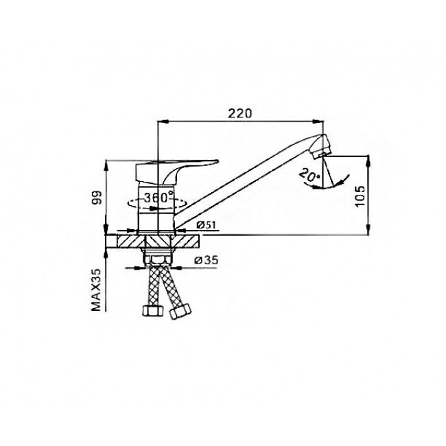| Тип подвода воды | Гибкий |