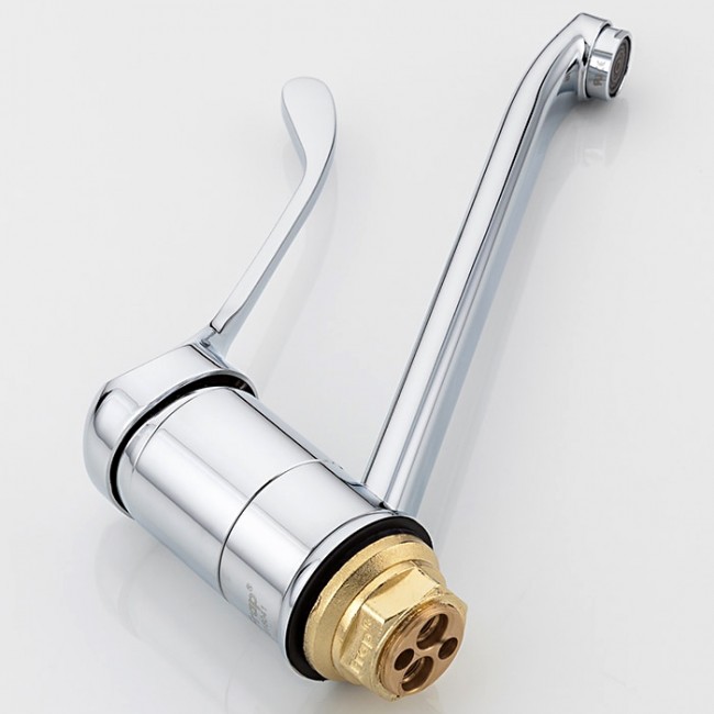 Смеситель для кухни F4954 хром Ø40, длинный гусак 20 см, локтевой Frap