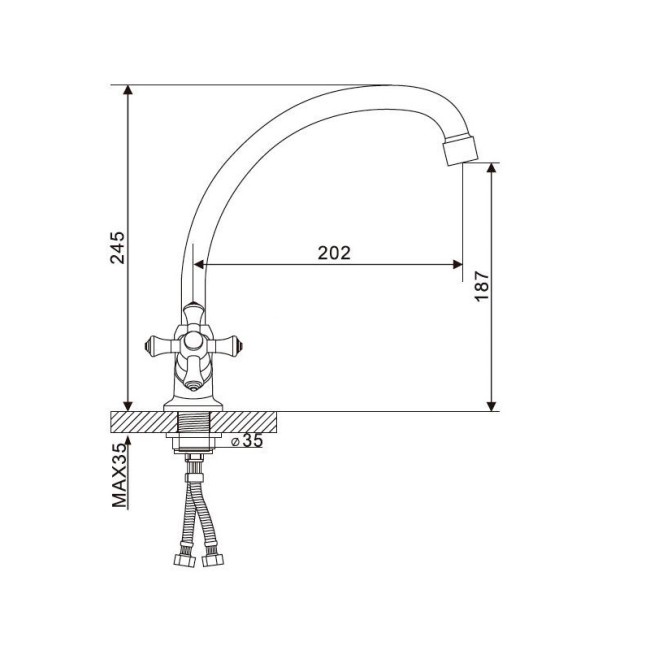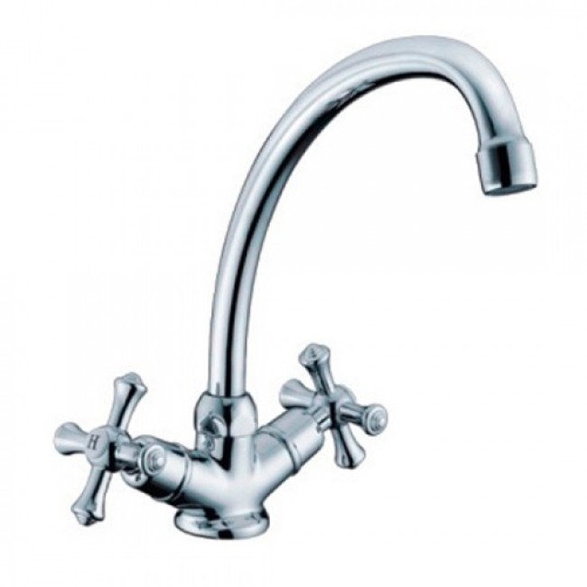 Двухвентильный смеситель для кухонной мойки G4046 GAPPO. Изготовлен из латуни с последующим хромированием. Корпус монолитный, поворотный излив. Кран-букса с керамическими пластинами (угол поворота 180 градусов). Металлические крестообразные рукоятки. Гибкая подводка 1/2 дюйма (длина 500 мм). Аэратор.