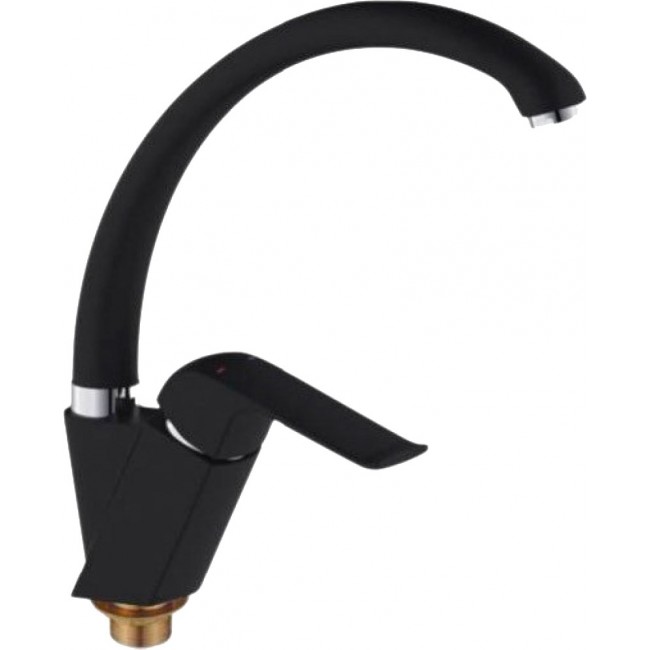 Однорычажный смеситель для кухонной мойки G4150 GAPPO с гайкой. Изготовлен из латуни с последующей окраской в черный цвет. Корпус монолитный, поворотный. Керамический Испанский картридж Ф35 мм. Металлическая рукоятка. Аэратор. Гибкая подводка на 1/2 дюйма (длина 500 мм).