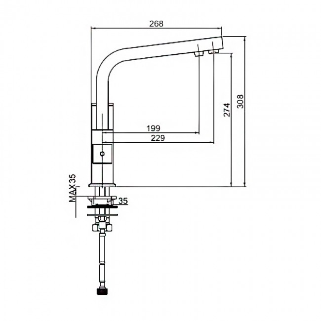 Смеситель для кухни G4307 хром Ø35, высокий, с подключением фильтра Gappo