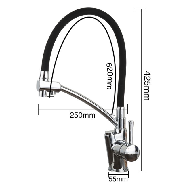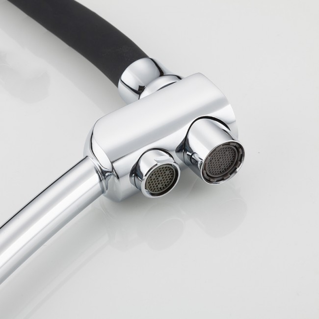 Смеситель для кухни с гибким изливом Gappo G4398-11, одна рукоять чтобы регулировать напор воды. Функциональный смеситель имеет переключатель для обычной и питьевой воды. Притом, оттоки отделены друг от друга. Таким образом, обычная водопроводная вода не будет смешиваться с фильтрованной. Наличие аэратора в смесителях обеспечивает равномерный поток воды и ее относительноесмягчение. Сетка в устройстве отфильтровывает нежелательные примеси.